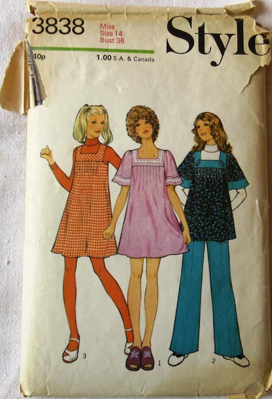 Style 3850 Young Junior Teens Pinafore Dress Tunic Blouse Pants 1970